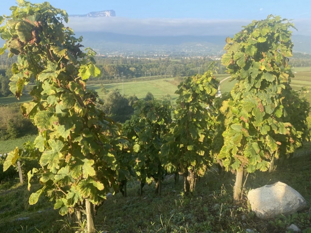 Ce même calcaire a un effet inattendu sur le travail de la terre. À Chignin, au sud-est des Bauges, malgré la pente parfois rude, la famille Quenard exploite la vigne depuis des décennies à flanc de montagnes. À Chignin, ce terroir si propre au massif si montagnard se retrouve dans le vin. Les flocons n’ont pas encore enveloppé la vigne, mais déjà le froid recouvre les Bauges et engourdit la pierre. Un trésor en hiver. »